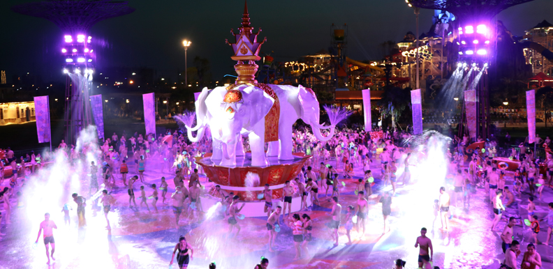 克拉湾水上乐园由全球顶级主题水公园规划设计机构倾力设计,园区围绕“宝石”文化进行主题创意设计,各主题区域结合宝石的色彩、形态、名称、种类等元素体现出不同特色,同时结合多种影视+水上娱乐为主题的高科技设施打造现代水上乐园的游玩体验。园区现有各类游乐设施30余项,拥有面积超过10000平方米的超大型海浪池和沙滩,以及国内首屈一指的傣族风情大型泼水广场。